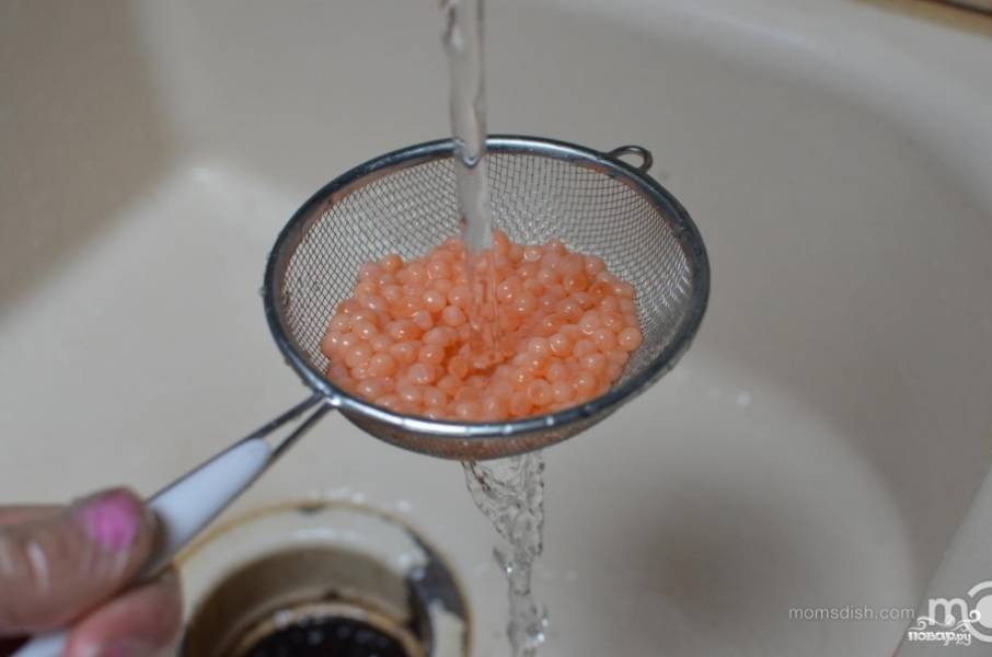 Совет! Жидкости должно получиться в два раза больше объёма чёрной икры.