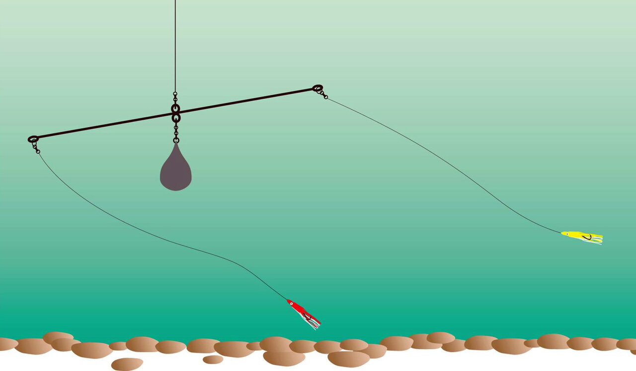 В итоге за счёт такого амортизатора можно без перезабросов ловить карпа. Правда, чтобы забросить такую закидушку-резинку, понадобится лодка. - Ещё один вариант – на конец лески привязывается кормушка со встроенным грузилом. Чуть выше ставится два коротких (чтобы минимизировать риск их запутывания) поводка. Некоторые рыболовы даже продевают их через противозакручивающуюся трубку. Получается что-то вроде коромысла, по разные стороны которого выходят поводки.
