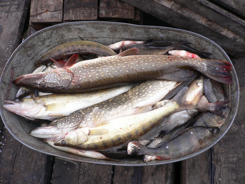 Некоторые более умные рыбы даже сумели съесть нашу наживку и уйти с рук! К счастью, поблизости есть несколько местных рыбаков, которые на самом деле сидели там весь день, не использовали рыбалку только как предлог, чтобы напиться, и поэтому добились большего успеха. Некоторые из них тайно отказались от удочек, которые превращают рыбалку в хобби, в пользу менее легальных сетей, которые превращают рыбалку в средство существования и торговли.И они с удовольствием продают нам свой улов! Возвращаемся на базу с «нашим уловом» налимом и судаком, и мы (имеется в виду в основном Наталья, повар базы) готовы готовить.