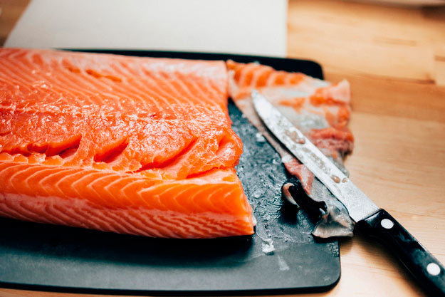 Если вы покупаете не сырую рыбу, а замороженную, то здесь определение по цвету мяса может не сработать. В замороженном виде и та, и другая рыба может иметь одинаковый оттенок. Это же касается и соленого лосося. Но здесь производитель может пойти на ухищрения подкрашивания рыбы, поэтому берите филе только тогда, когда видны белые прожилки в мясе.