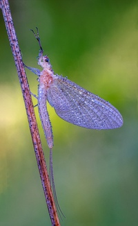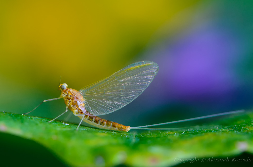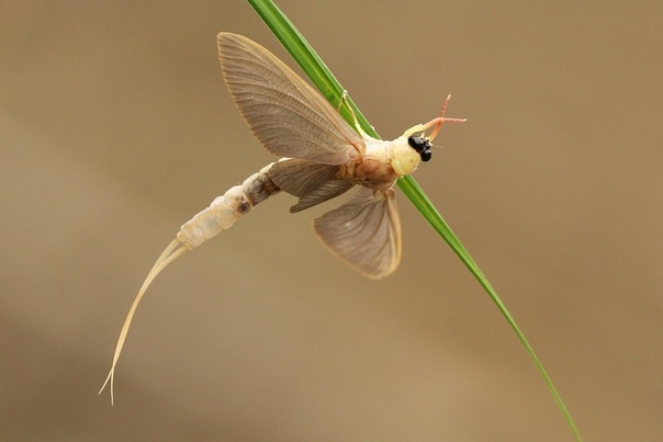 Длинные хвостовые нити поденки служат ей рулями в полете.