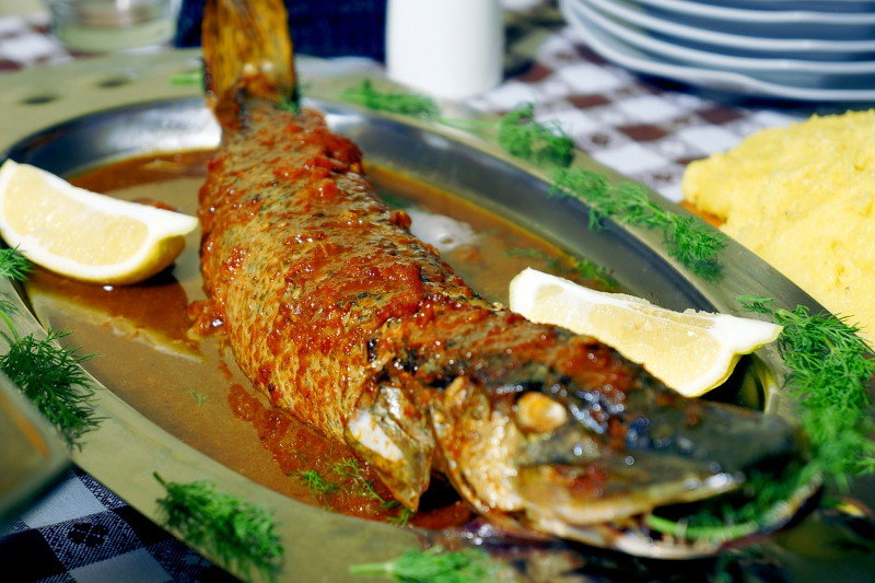 Собачья рыба по-итальянски с полентой с ароматом тимьяна