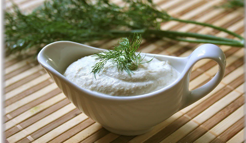 Второй вариант – это соус сметанный с чесночком. Этот соус обладает пряным и ароматным вкусом.