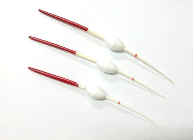 При этом внешний вид поплавка может отличаться в зависимости от цели. Так, на спокойной воде без течения используются короткие и тонкие изделия с небольшой грузоподъемностью. Это максимально чувствительная версия поплавка из гусиного пера, позволяет подсекать даже при легкой поклевке.