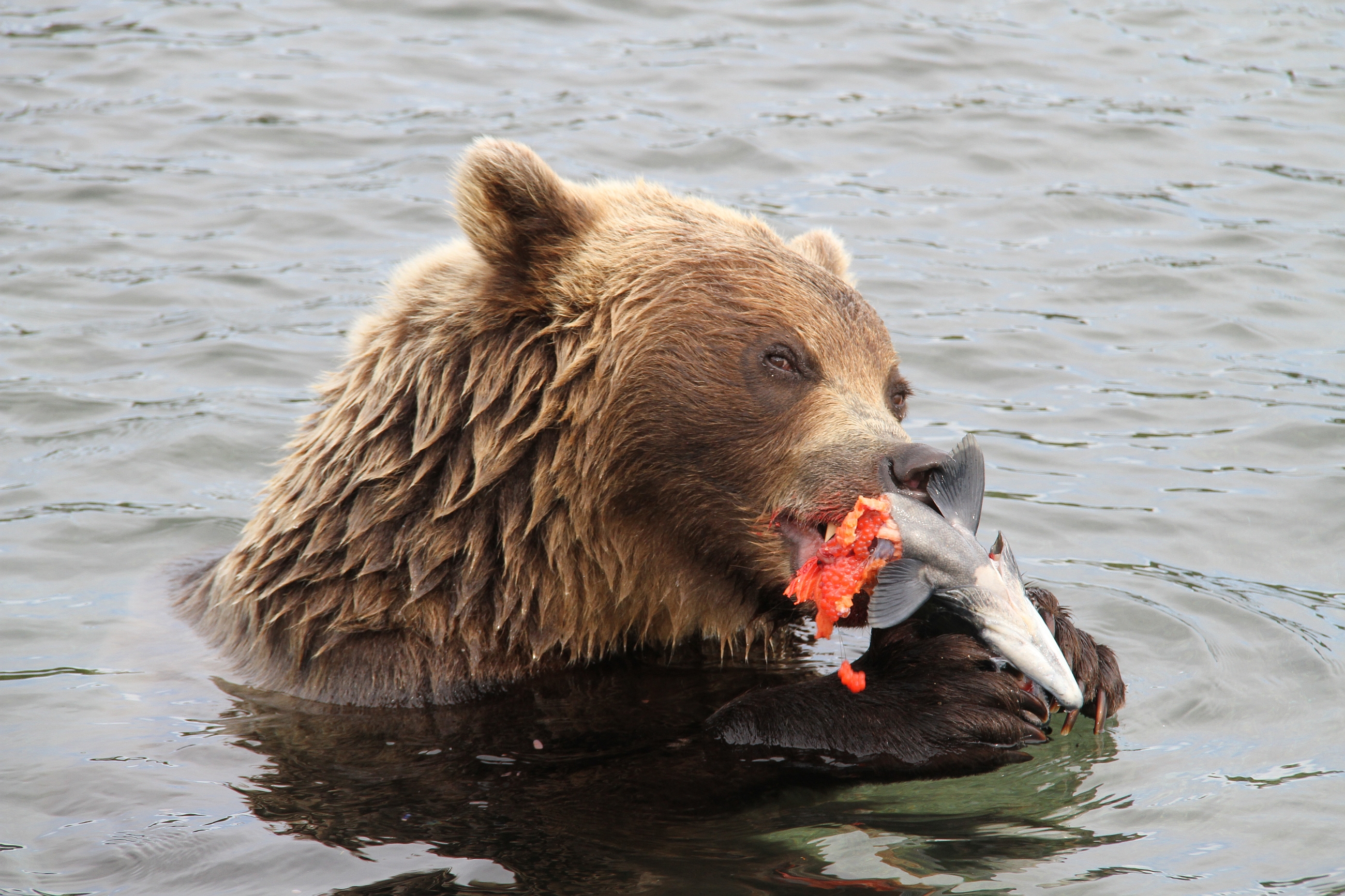 В Сибири, близ горных речек, медведи промышляют рыболовством. Придя к речке после захода солнца, Мишка садится на бережку мелководной речки, на камень и, вылавливая из воды плывущую рыбу, выбрасывает ее на берег. Наловив достаточно рыбы, медведь делает передышку, съедает пойманную рыбу, потом отдохнет, поваляется в высокой траве и снова принимается рыбачить. Так проводит он всю ночь, до утра, на день уходит в лес, а к ночи снова возвращается на облюбованное местечко.