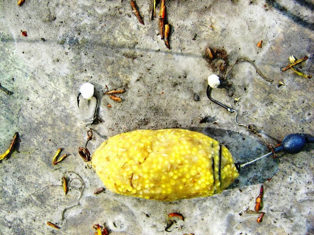 Главное требование к прикормке — это способность создать вокруг кормушки и приманки плотное мутное облако. Это даёт возможность более эффективно скрыть искусственное происхождение снасти, а также извивающиеся поводки. Для этого и покупную прикормку, и состав собственного приготовления нужно смешать с толчёным песочным печеньем в соотношении 4:1.