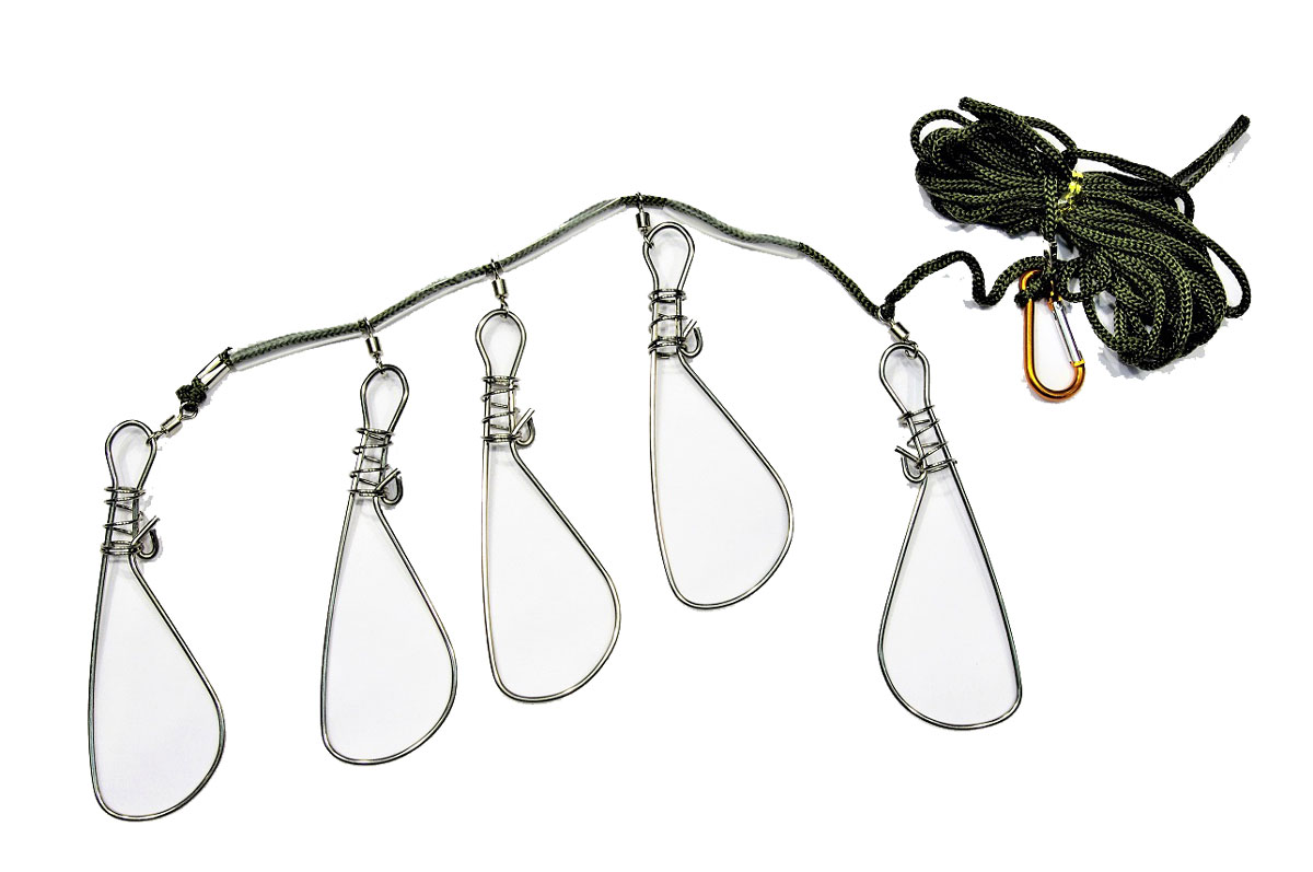 Следует научиться правильно насаживать хищников на данную конструкцию. Насаживать рыбу рекомендуется с последнего карабина. Это позволит не вытягивать всю конструкцию из водоема, нужно будет вытаскивать только лишь последний крепежный элемент. Цеплять животных на такую снасть следует максимально аккуратно, чтобы травмирование рыбы было минимальным.