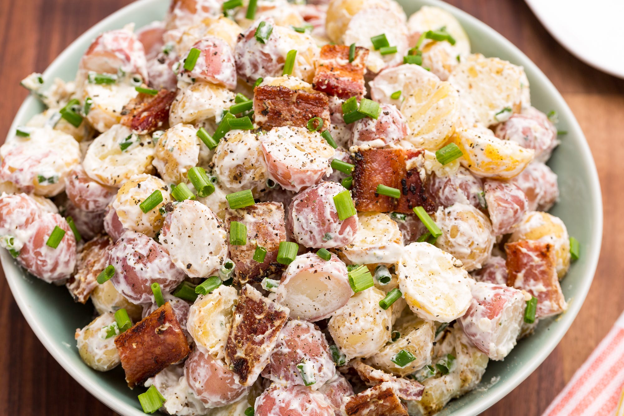 Картофель почти полностью размят (но я рекомендую оставить несколько кусочков), поэтому текстура кремовая.Самое главное, ключевое различие во вкусе связано с типом майонеза, который мы используем (подробнее об этом ниже).