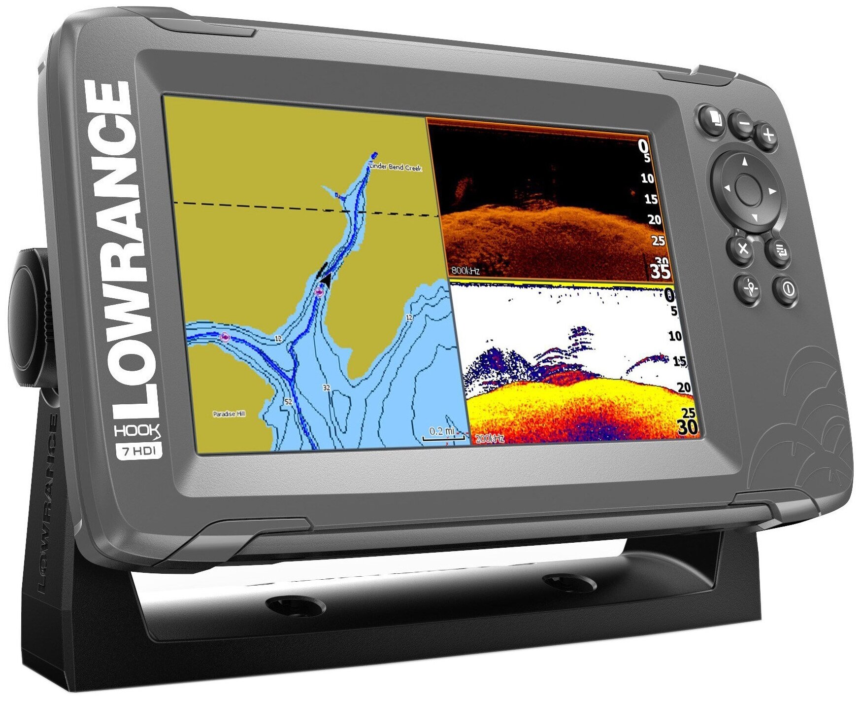 - Гидролокатор с нижним изображением отлично подходит для обнаружения объектов в виде дискретных структур, включая рыбу, покоящуюся на дне (которую невозможно обнаружить с помощью двухмерного гидролокатора), или отдельную рыбу внутри плотного косяка наживки.