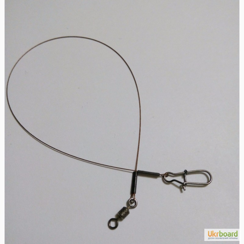 - На поводок со стороны шнура необходимо ставить либо вертлюг, либо зажимное кольцо, либо карабин, так как проволока довольно тонкая, узел на шнуре пережигает сам себя.