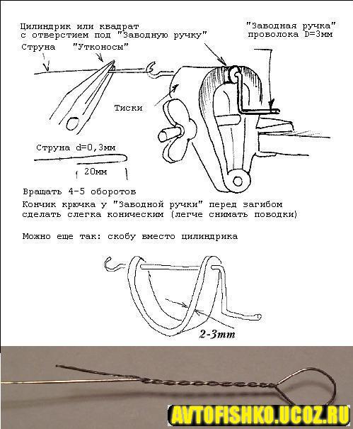 Поводки для рыбалки своими руками изготавливаются поэтапно: С помощью бокорезов, отрезается поводковый материал в размере мм. Берется трубочка такого же размера и, используя надфиль, надрезается и ломается на две половины. Поводок, изготовленный из флюорокарбоновой лески, выдерживает в районе двадцати поклевок, поэтому в процессе ловли, за ним следует постоянно следить. Имеются технологии покрытия обычной лески флюрокарбонатным покрытием. Изготовление поводка на щуку из флюрокарбоната своими руками. Монтаж такого поводка с применением трубочек, ничем не отличается от изготовления поводка из любого материала.