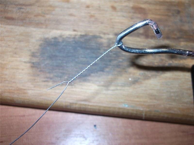 провода, почему 27см.? – по 4 см оставляем на скрутку. Теперь аккуратно вытягиваем жилы за край. Оставляем только стальные жилы, медные без надобности. отмеряем 4 см и немного загибаем с каждой стороны круглогубцами, можно просто руками. теперь зажимаем поводок с краем плоскогубцами, и на малых оборотах скручиваем, примерно оборотов получается. Боец, я правильно понял, что вы этими поводками на рыбалке ещё не пользовались? Если так, то обратите внимание на несколько моментов, которые, на мой взгляд, важны в изготовлении: 1. Насечки на губках пассатижей пережимают поводок и он может сломаться на этом месте в самый неподходящий момент.
