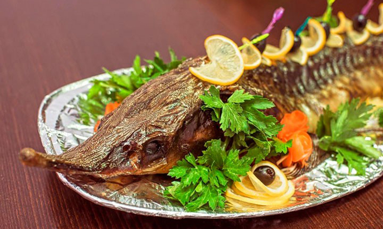 Подавать осетра следует торжественно, не пожалев сил и времени на то, чтобы украсить блюдо. Поверьте, царская рыба заслуживает такого внимания.