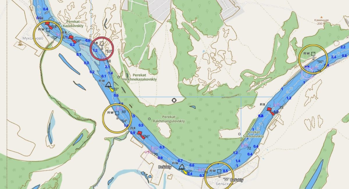 Кнопка Ямы , очень сложная система автоматического определения ям с глубиной от 3-х метров конкретного водоёма, в некоторых случаях глубины ям будут от 2.5 метров, это связано с окружающим рельефом дна, например, если вокруг рельеф дна с глубиной до 1 метра, то система определит глубину в 2.5 метра, как яму, что является естественным для рыбной ловли. При нажатии на кнопку, будут отображены участки с глубинами всех известных системе ям. Очень важно знать, ямы отображаются вне зоны фарватера, то есть глубины будут естественные.