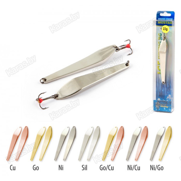 - Финский производитель Puustjarven Viehe Ky предлагает вертикальную приманку Captain. Высокое качество является визитной карточкой этого бренда. Важным показателем этого является то, что над полировкой приманок трудятся вручную. Это наживка в форме вытянутого ромба имеет зализанные грани и скругленные края. Передняя часть сделана более широкой и тяжелой. На цепочке висит одинарный крючок. Во время погружения в воду блесна описывает петли, двигаясь по спирали, но возвращается в исходную точку. С такой оснасткой нужна рывковая проводка. Приманки представлены в размере 2.3 см, 3.8 см, 5 и 6 см. Расцветки – серебро, латунь, медь и бронза.