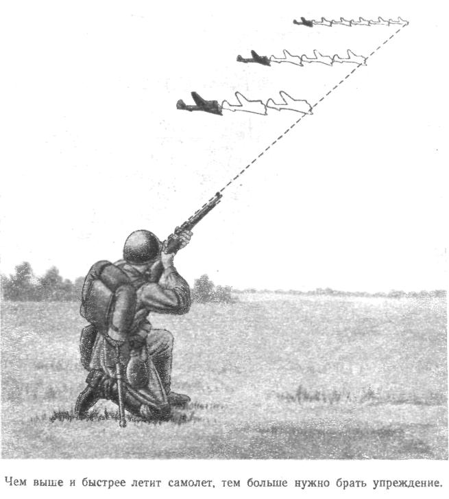 Такая стрельба характерна тем, что ружьё направляют в точку, расположенную перед целью, по линии её следования.