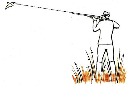 - Дичь, идущая в штык, на малой высоте, требует медленной поводки, а если вдруг идёт выше охотника, то выстрел производится в момент перекрытия добычи стволами.