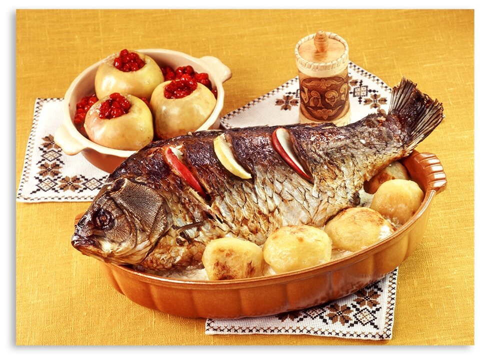 Карп фаршированный луком в духовке: состав, калорийность и пищевая ценность на 100 г