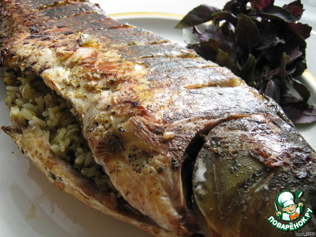 Пошаговая инструкция приготовления Карп, фаршированный рисом и запеченный в сметане