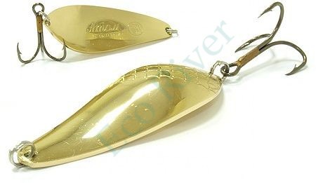 Таким образом приманка в воде располагается крючком кверху, благодаря чему редко цепляется за водные растения. Сделанная из латуни блесна используется в основном на реках. Ловится судак и щука.