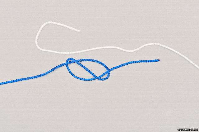 - На свободном конце поводка сделайте узел и затяните его он нужен для того, чтобы в дальнейшем он не выскользнул из петельки. В качестве него подойдёт «восьмёрка».