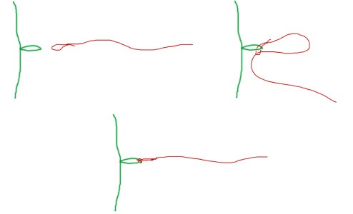- Затем в эту петельку продеваем поводок таким образом, чтобы он охватывал основную так, как показано на рисунке.