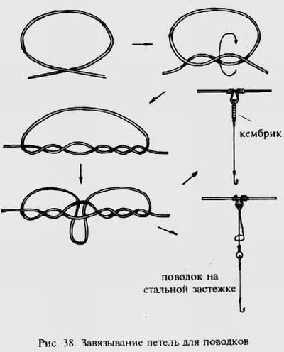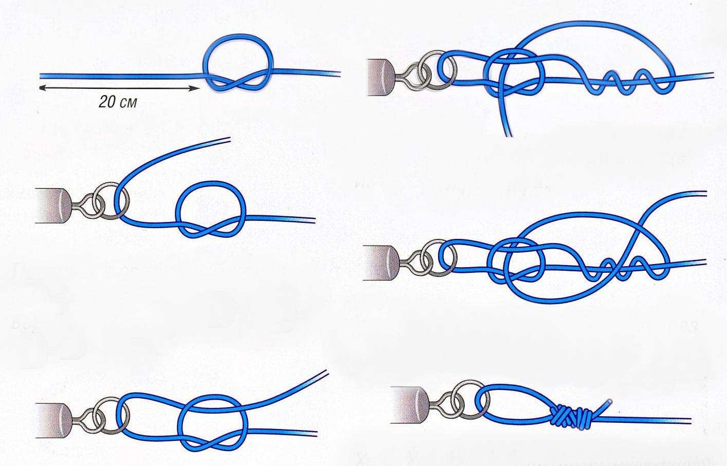 Существует множество различных вариаций крепления поводков к леске, которые различаются типом используемых узлов.