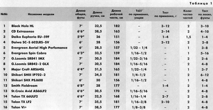 Тест по приманкам принят в Европе, тест по леске – в Америке и Японии. Их примерное соответствие приводит таблица 1.