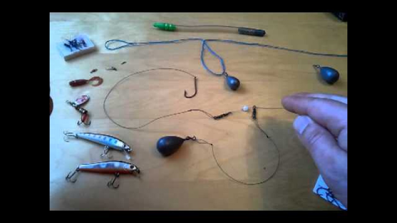Крючки привязывают к поводкам, которые впоследствии крепятся к основной леске. Если в водоёме есть крупная рыба, то используют более крупные крючки. Чтобы данные элементы не цеплялись друг за друга при ловле или транспортировки резинки, на главную леску располагают небольшие кусочки изоляции, в которые проделывают крючки.