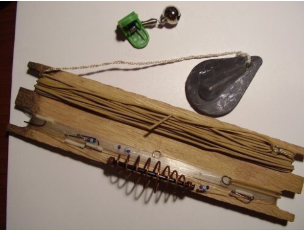 В специализированных рыболовецких маркетах можно приобрести донные снасти любого размера и комплектации, однако опытные рыбаки предпочитают делать резинки собственноручно. Конструкция снасти довольно простая, незамысловатая, состоит из нескольких базовых элементов.