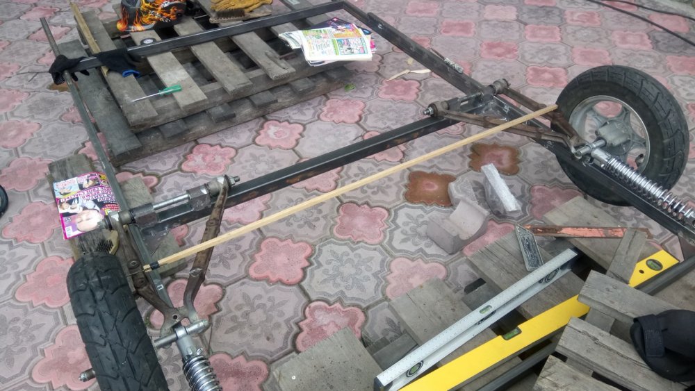 - К раме прицепной платформы прикрепить стяжкой ногу двигателя.