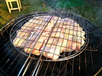 - Подготовьте Big Green Egg или другой гриль для прямого приготовления на среднем огне 375-400⁰.Поместите набор решеток для гриля на гриль вверх дном, чтобы создать плоскую поверхность для приготовления пищи.