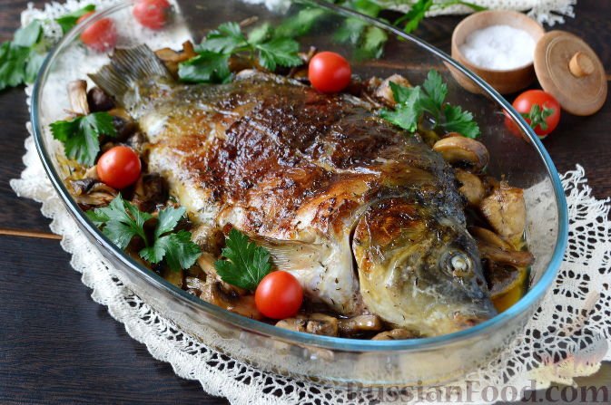 - Фаршированный карп запеченный в духовке — рецепт карпа Фаршированный карп, запеченный в духовке, может стать одним из главных рыбных блюд вашего праздничного стола….