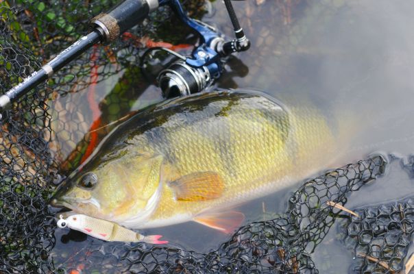 Судак имеет узкую глотку, поэтому предпочитает тонких маленьких рыбок. Для его ловли применяют узкие воблеры, которые проводят горизонтально.