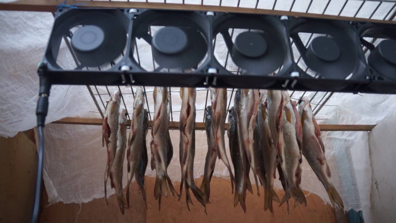 Лучшим местом для этого процесса будет навес на южной стороне. Тушки должны висеть так, чтобы их бочки не соприкасались друг с другом. В брюшки крупной рыбы необходимо вставить распорки.