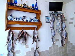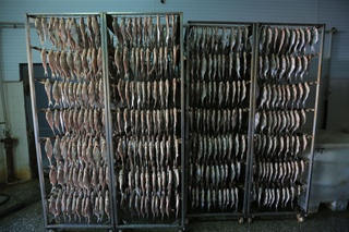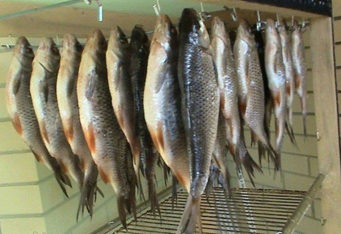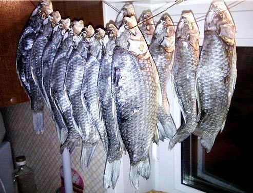 Для окончательного провяливания рыбную тушку подвешивают в хорошо проветриваемом помещении на 2-3 дня.