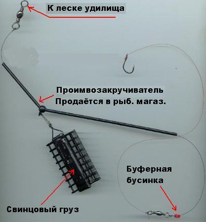 Решетчатые кормушки самостоятельно используют для глухого монтажа, применение дополнительных материалов, таких как противозакручиватели, позволяет сделать монтаж скользящим и прикрепить несколько поводков.