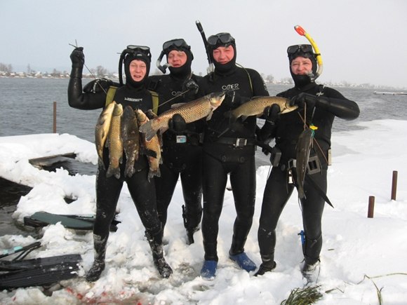 Впервые заявив о своем желании поохотиться под водой, я увидел совершенно удивленные глаза местных товарищей, а их отношение к этому делу было как проявление некоторого сумасшествия с моей стороны (дело-то было ранней весной, в марте-апреле, и вода была холоднющая), а когда я действительно одел гидрокостюм и залез часа на четыре в воду – решили, наверное, что с головой у меня точно чего-то не в порядке…Из этого я сделал вывод, что ильмень подводными охотниками посещался до меня очень редко, если они вообще когда-то бывали на нем. Поняв, что подводная охота – это не только увлечение или какая-то блаж, а и довольно тяжелый труд, начали проявлять некоторое даже уважение и здоровый интерес.