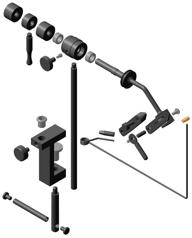 - Скользящая пружина на роторе, закреплённая кольцом, предназначена для одновременного удерживания 2-3 нитей при вязке сложных мушек.