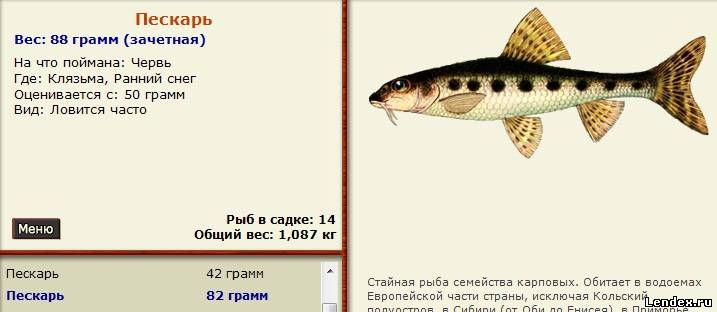 А вот по ночам пескарь не берет, поскольку, как уже было сказано, предпочитает отлеживаться в нижних слоях. Поздней осенью (в ноябре) пескарь отправляется на зимовку и прячется в заросли водный растений. Но, несмотря на это, зимой поймать его тоже реально: в холодную пору пескарей лучше всего ловить в наиболее глубоководных местах. Пик интенсивности клева выпадает на момент осветления внешних вод.