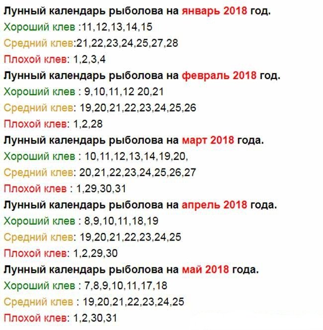 Дни, когда ожидается хороший поклев рыбы: с 5 до 12, с 19 до 24.