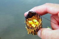 Кроме доставки к зоне лова при подготовке фидерного корма учитывают и силы течения, влияющие на интенсивность вымывания прикорма с сетки. Регулируют этот параметр как величиной ячейки, используемой для ловли кормушки, так и плотностью прикормки. Как правило, на течении применяются более плотные смеси с низкой степенью рассыпчатости и высокими показателями пластичности и клейкости корма. Сыпучие, быстро разлагающиеся корма потребуют частых забросов оснастки и нерационального использования кормовых смесей, которые не эффективно собирают рыбу на размытую и большую по площади точку закорма, что явно не способствует успешности ловли.