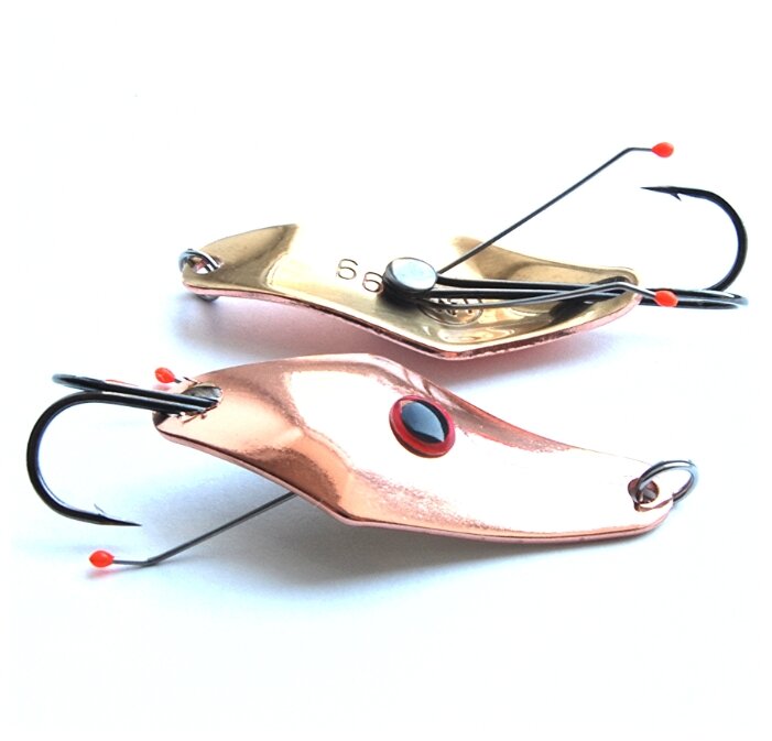 В первое время на такие блесны с широким и массивным лепестком чаще всего ловили щуку в труднодоступных местах. Защитные усы располагаются как на цевье крючка, так и на теле блесны при помощи заклепки.