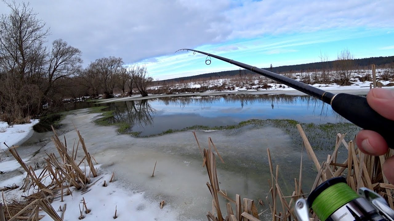 В весенний период ловля щуки на спиннинг начинается в проталинах.