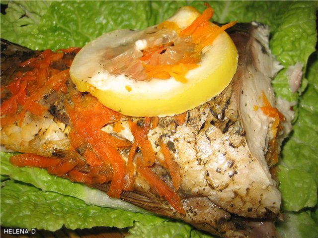 Карп в духовке под майонезом приготовлен, можно подавать к столу!