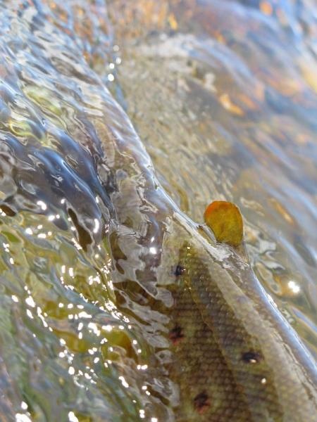 37. Как отличить поднимающегося хариуса от форели? Хариус во время подъёма выпускает маленькие пузырьки. Форель (обычно) этого не делает.